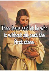 first stone at her”. Then he bent over again and wrote on the ground. When they